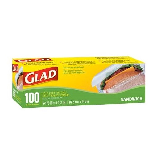 Glad Sandwich Fold Top Bags 6.5" x 5.5" (Pack of 100)
